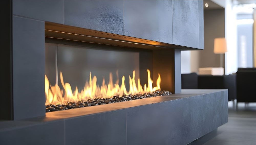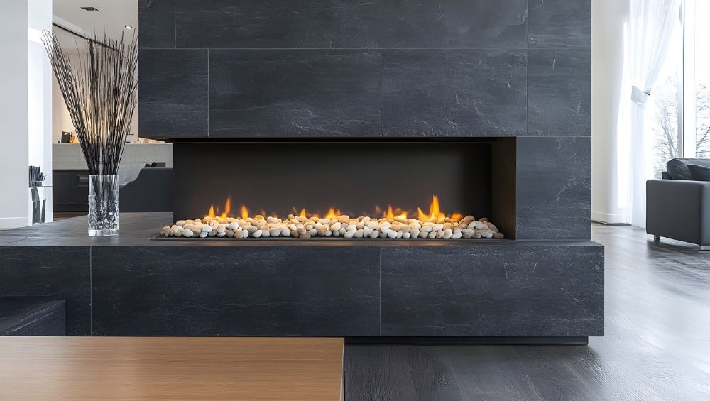 - Реалистичен пламък и стилен дизайн – съвременните газови камини имат керамични дърва или декоративни камъни, които създават естествена визия на пламъка.