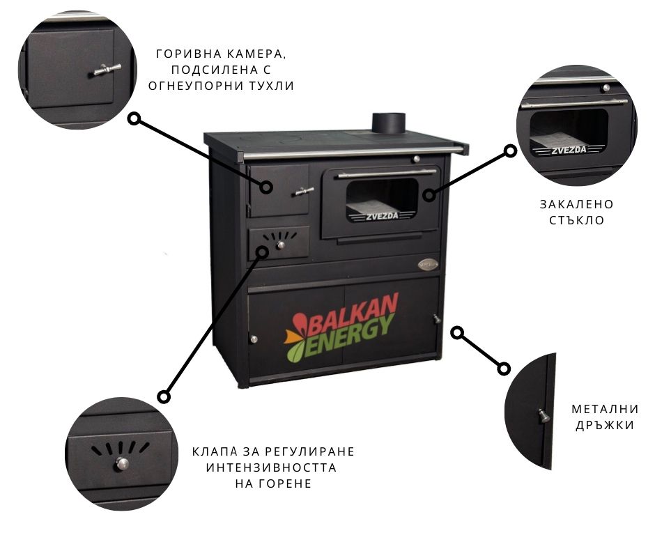 Готварска печка на дърва Звезда Classic SP, 5.7kW
