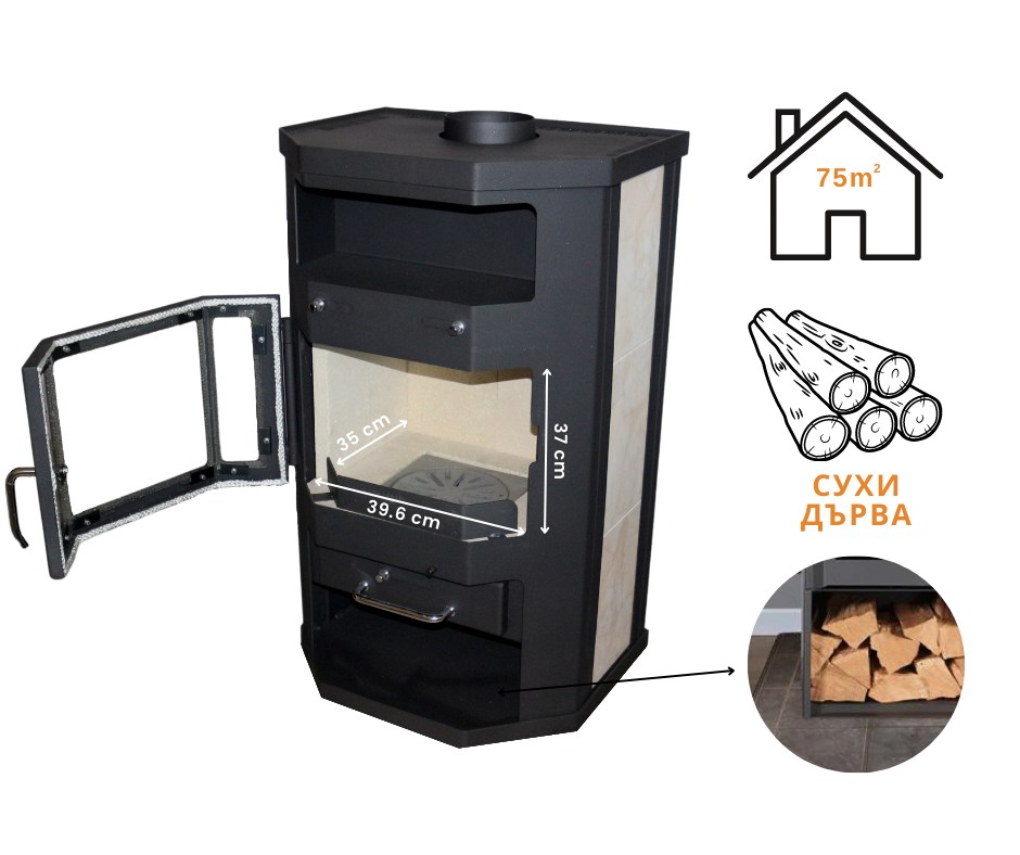 - Ниша, която позволява да разположите Вашите дърва, за да се изсушат добре преди да ги използвате.